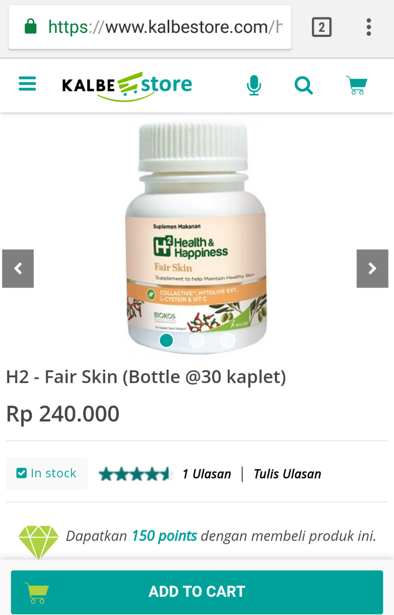 Saya lebih suka membeli H2 Health & Happiness secara online. Yaitu via Kalbe Online Store . Sering dapat banyak penawaran menarik. Bahkan ada poin-poin setiap belanja yang dapat dikumpulkan untuk mengikuti penawaran menarik lainnya.