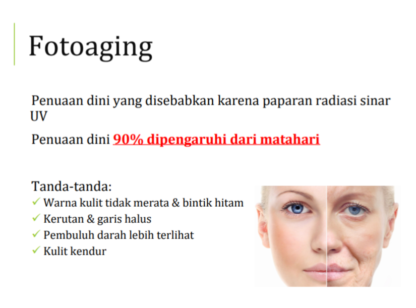 Pernah dengar istilah Fotoaging? Apakah kamu tahu kalau salah satu penyebab penuaan kulit adalah karena terkena radiasi sinar UV?