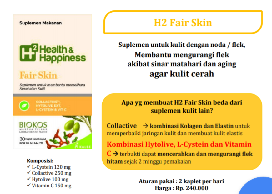Sejak kecil saya tidak concern dengan yang namanya suplemen kulit. Satu-satunya suplemen yang saya konsumsi selalu yang berhubungan dengan kesehatan tubuh. Apakah kamu juga melakukan hal yang sama..? Tapi akhir tahun 2017 lalu, saya berkenalan dengan brand H2 Health and Happiness dari Kalbe Farma. Dan jadi lebih melek suplemen kulit berkat moment ini. Kenapa akhirnya saya memutuskan untuk mengkonsumsi H2H? Jenis suplemen yang mana yang saya konsumsi? Kenapa? Temukan jawabannya dalam blogpost ini.. yuk dibaca sampai akhir ya 😉