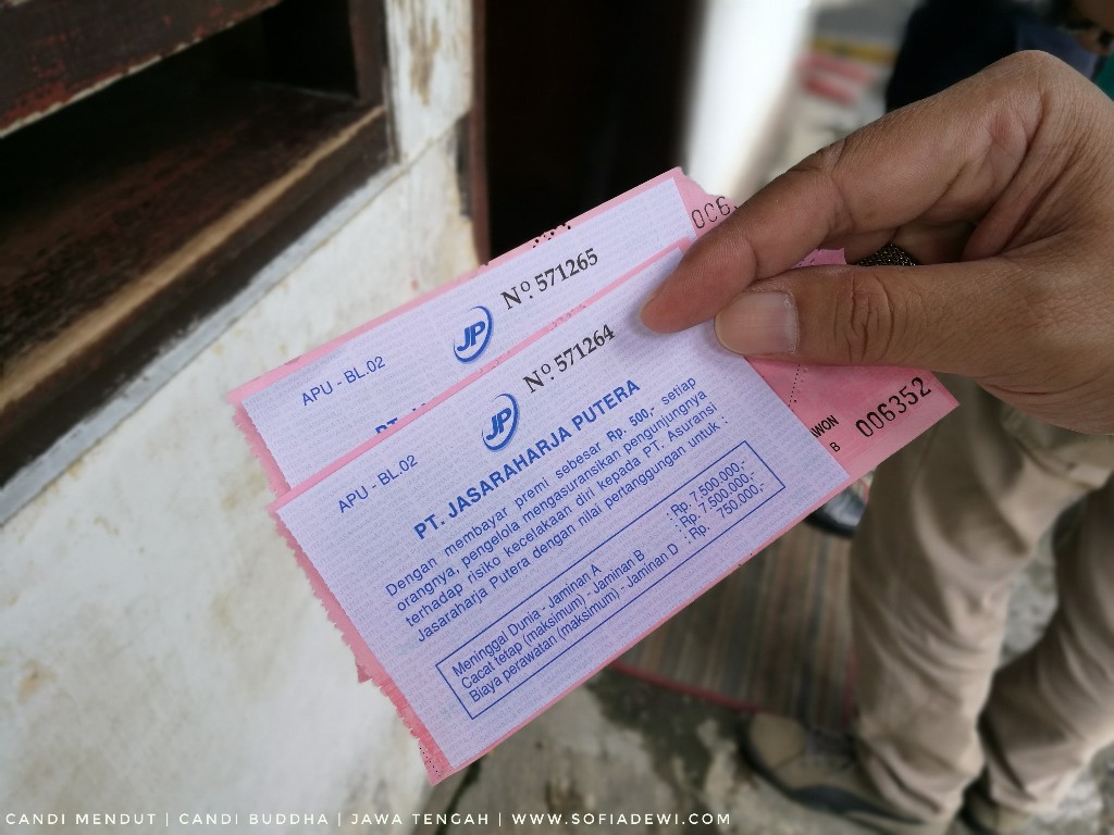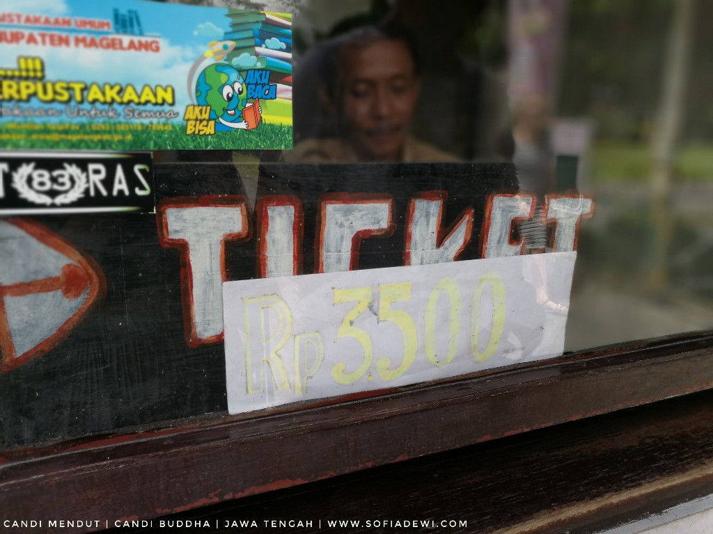 Untuk masuk ke komplek candi, kami harus beli tiket dulu di loket penjaga. Harga tiket untuk wisatawan lokal cukup IDR 3.500 saja, sudah termasuk asuransi.
