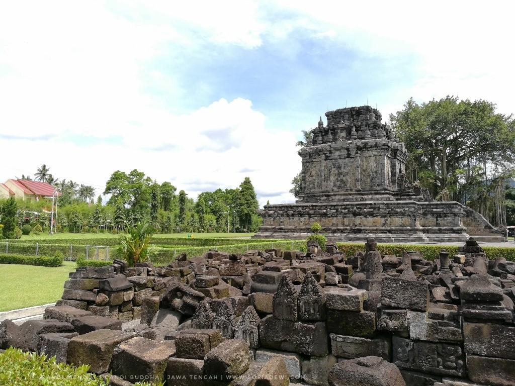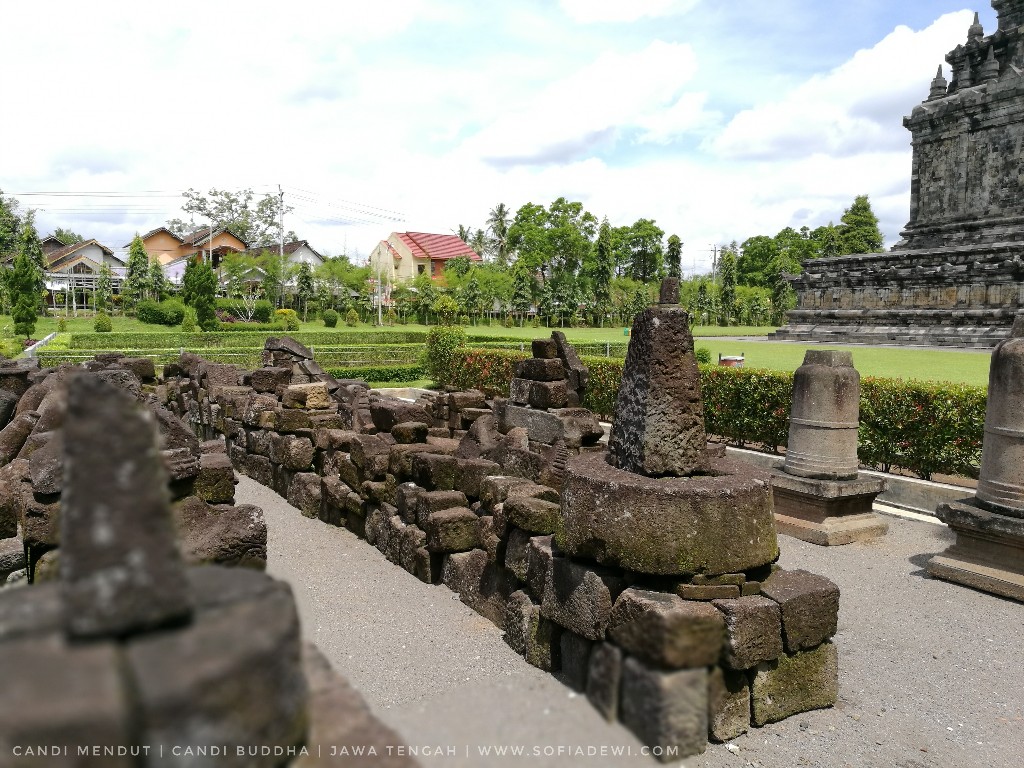 Dan dari arah sisi puing-puing ini.. kamu bisa mengambil gambar dengan latar belakang Candi Mendut. bahkan di antara puing-puing pun menjadi spot foto yang cantik..