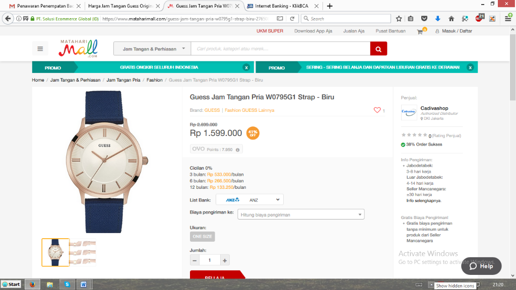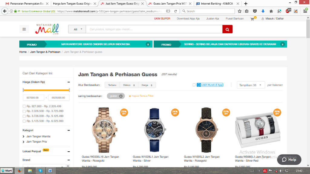 Kebetulan memang saya punya alasan kuat untuk selalu belanja online di Matahari Mall, yaitu BANYAK DISKON SIST! Dan benar… ketika saya cek harga jam tangan guess beneran deh pas ada diskon akhir tahun. Jam yang saya incar .. diskon 41% wuhuu…. lucky me!!