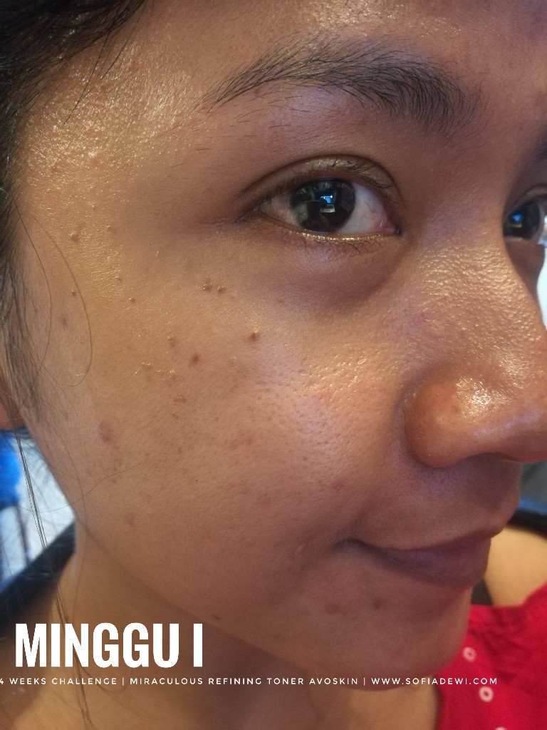 Memasuki minggu ke-4, aku sedang haid hehe jadi ada banyak keluar jerawat.. jadi menurutku ini bukan karena toner- nya ..