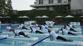 Pristine 8+ menyelenggarakan aktifitas yoga yang sangat menarik karena dilakukan sambil mengapung diatas air. Yoga diatas air ini adalah pertama yang dilaksanakan di Indonesia dan merupakan puncak dari rangkaian acara Pristine 8+ Floating Yoga. Diharapkan dengan acara ini para pecinta yoga dapat menyeimbangkan pikiran dan juga menetralkan asam tubuh dengan cara yang sangat inovatif.