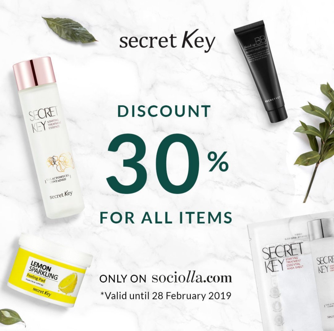 Dan untuk all Secret Key Products kamu bisa belanja juga di Sociolla dengan diskon 30%!! Well . Kapan lagi kamu bisa belanja? Cuma sampai besok lho! 28 Februari 2019.