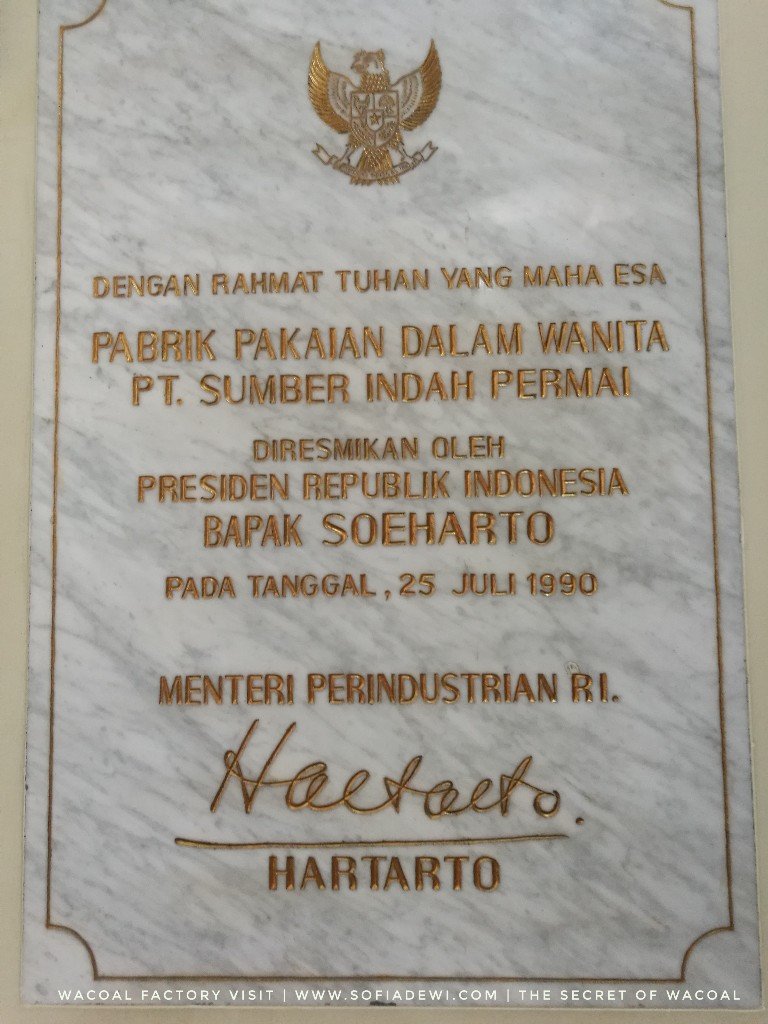 Wacoal ternyata diresmikan pada tahun 1990 oleh alm Pak Harto.. tau darimana? Dari prasasti ini loh..